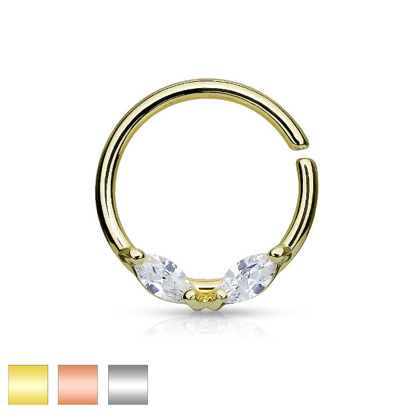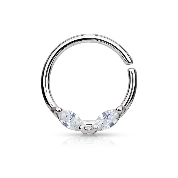 Раздвижное кольцо из хирургической стали 316L с IP покрытием. Украшено двумя кристаллами в форме лепестков.