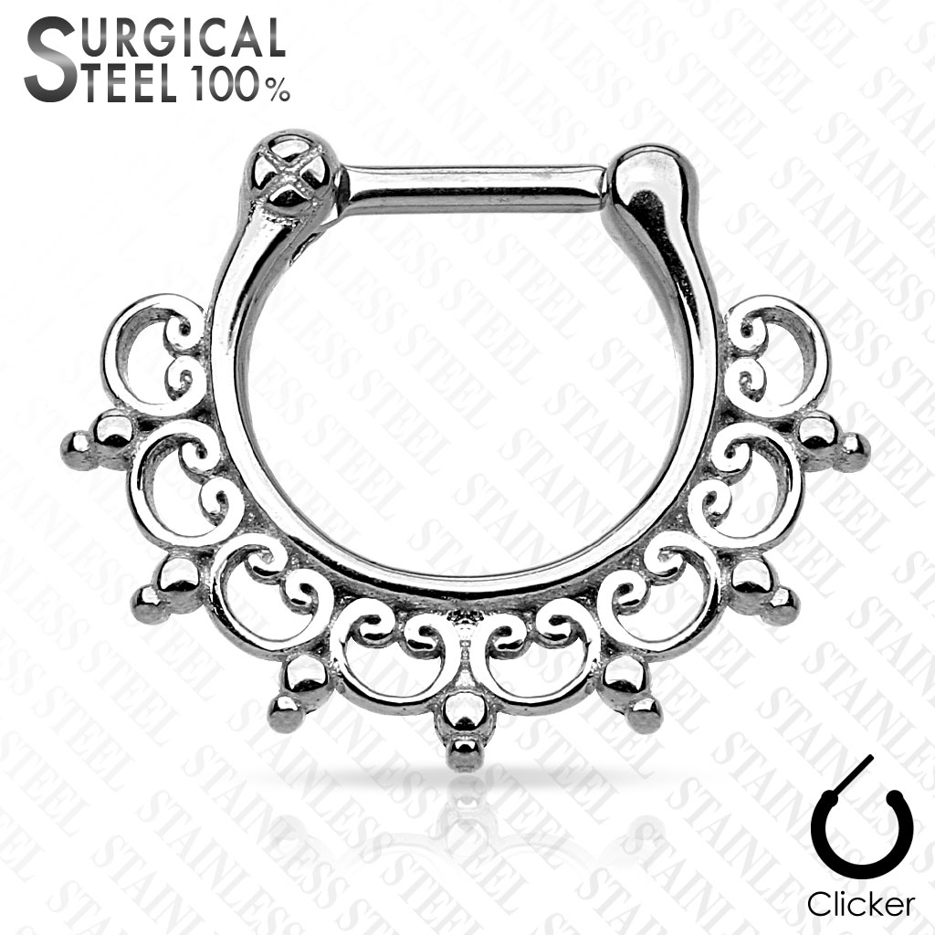 Ажурный кликер из хирургической стали 316L полированный и с PVD покрытием.