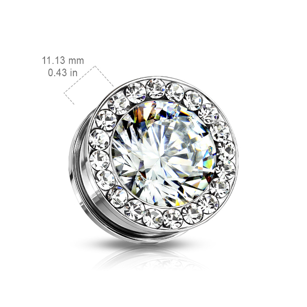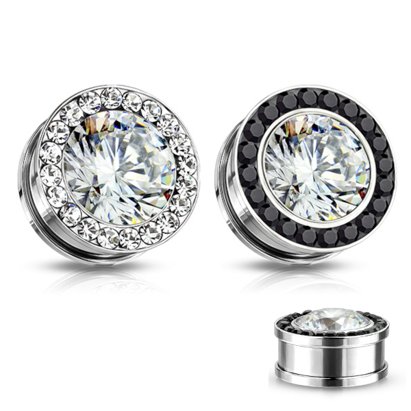 Тоннели из хирургической стали 316L с украшением в виде крупного страза, окруженного кристаллами меньшего размера.
