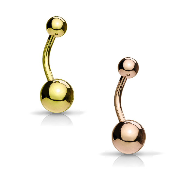 Банан из хирургической стали 316L с IP покрытием жёлтого и розового золота. Шарики: 5х8 мм.