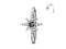Раздвижное кольцо из родированной латуни в форме звезды с чёрным кристаллом в центре.