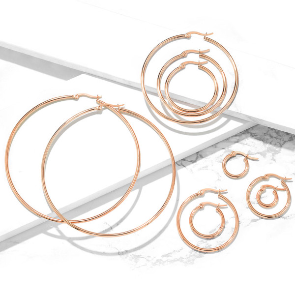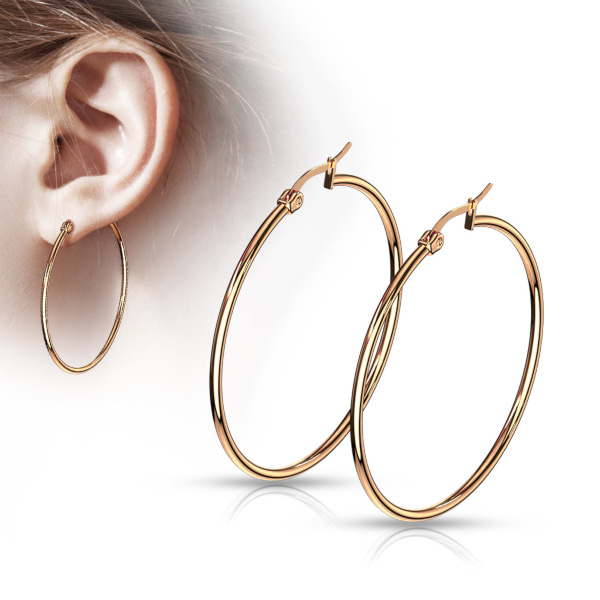 Серьги из хирургической стали 316L IP покрытием розового золота. В таблице указан внешний диаметр колец.