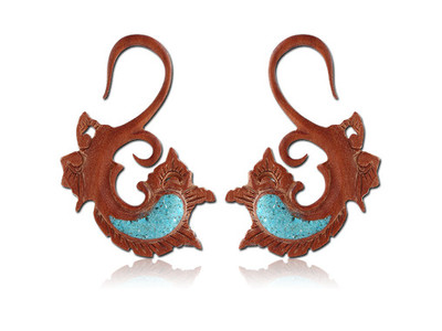 Фигурные спирали из древесины палисандра со вставкой из искусственной бирюзы.