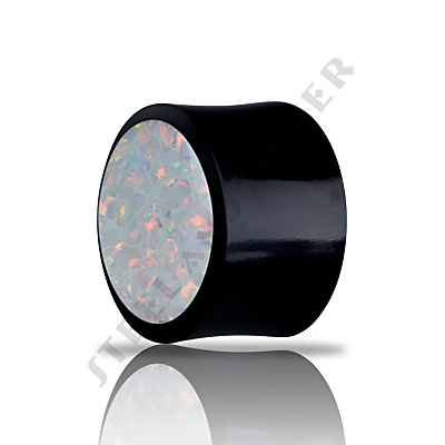 Плаги из рога водяного буйвола украшенные опаловой мозаикой под глянцевым покрытием.