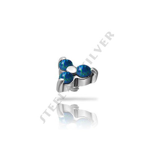 Накрутка из 316L стали в форме трилистника, украшенного синтетическими опалами. Резьба накруток 0,8мм подходят к украшениям толщиной 1 и 1,2мм с внутренней резьбой. Диаметр накрутки 4мм.