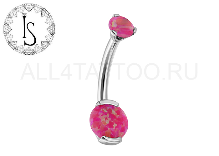 Банан с внутренней резьбой из имплантационного титана 6Al-4V-Eli ASTM: F-136 отполированный в ручную от американской компании Industrial Strength. Украшен граненым лабораторным опалом.