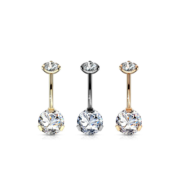 Банан из хирургической стали 316L с цветным IP покрытием и кристаллами 5 и 8мм. Внутренняя резьба.