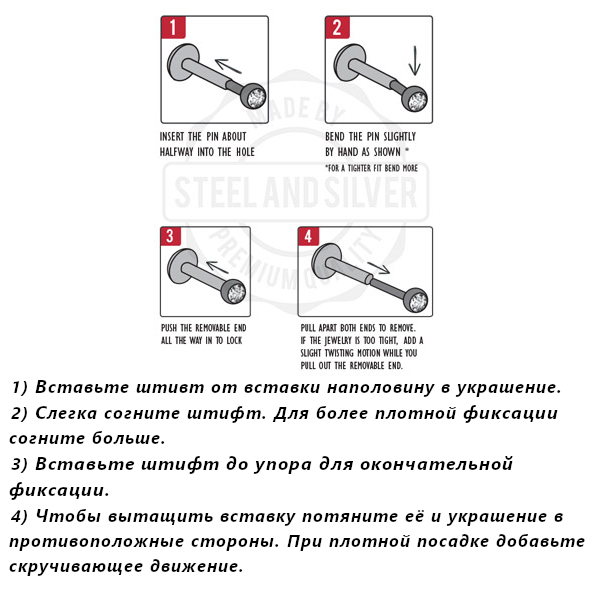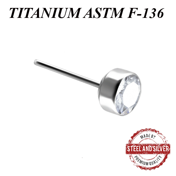 Вставка из имплантационного титана 6Al-4V-Eli ASTM: F-136 для безрезьбовых украшений. Украшена Premium Zirconia.
