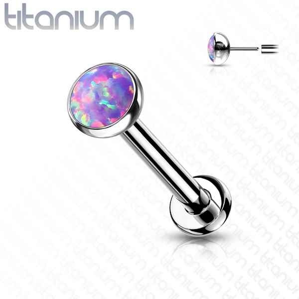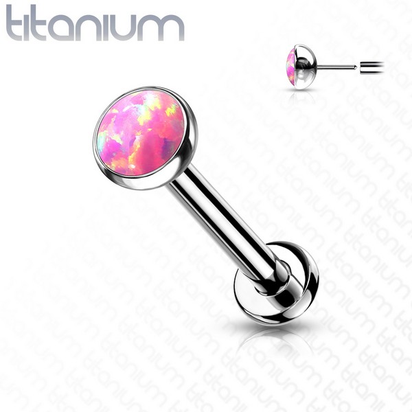 Безрезьбовой лабрет из имплантационного титана 6Al-4V-Eli ASTM: F-136. Украшен лабораторным опалом.