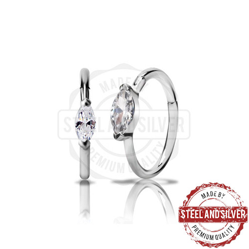Кликер из хирургической стали 316L украшен фианитом огранки "маркиз".