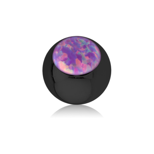 Шарик из хирургической стали 316L с чёрным PVD покрытием украшен лабораторным опалом. Подходит для украшений с внешней резьбой.