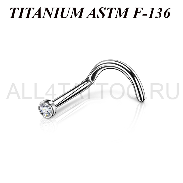 Нострил из имплантационного титана 6Al-4V-Eli ASTM: F-136. Украшен прозрачным фианитом диаметром 2мм.
