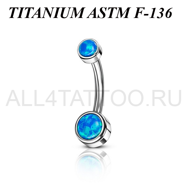 Банан из имплантационного титана 6Al-4V-Eli ASTM: F-136 с внутренней резьбой. Украшен ярким искусственным опалом.