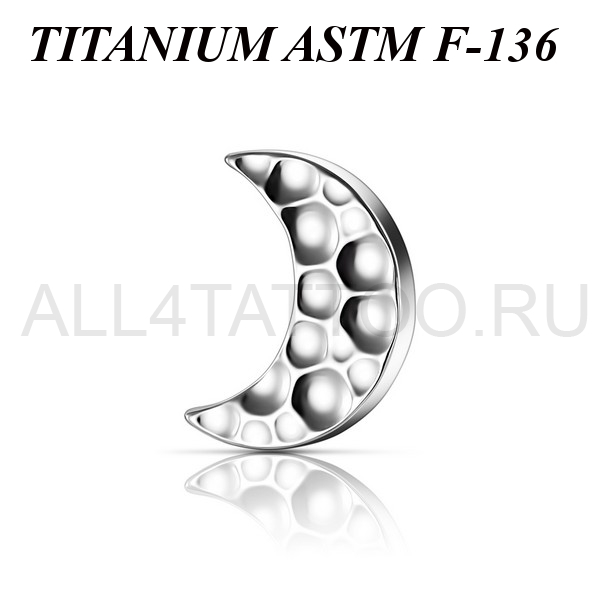 Накрутка из имплантационного титана 6Al-4V-Eli ASTM: F-136 в форме полумесяца с рельефными лунками. Размер декоративной части: 4х5мм. Подходит для украшений с внутренней резьбой.