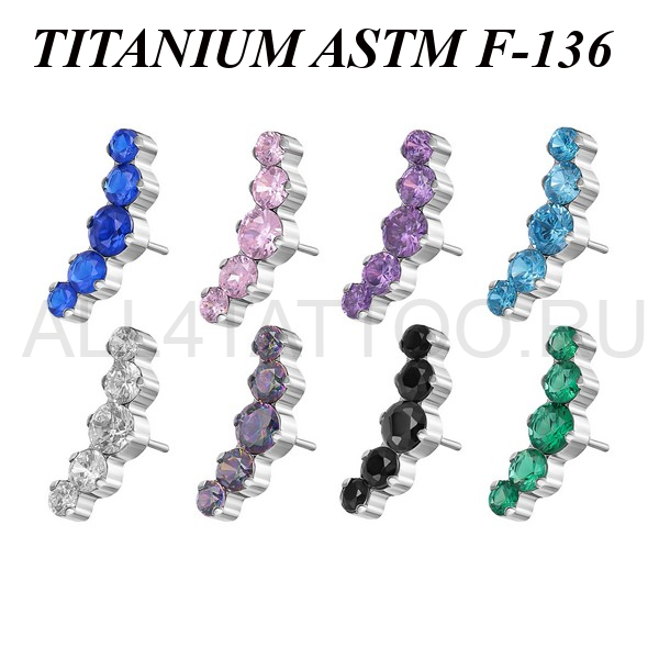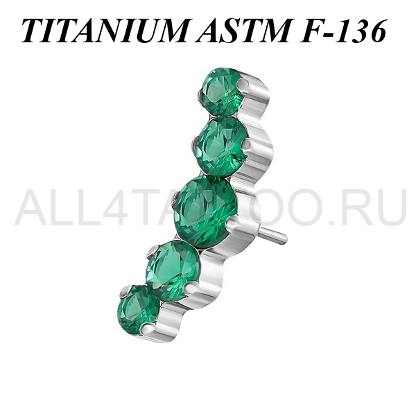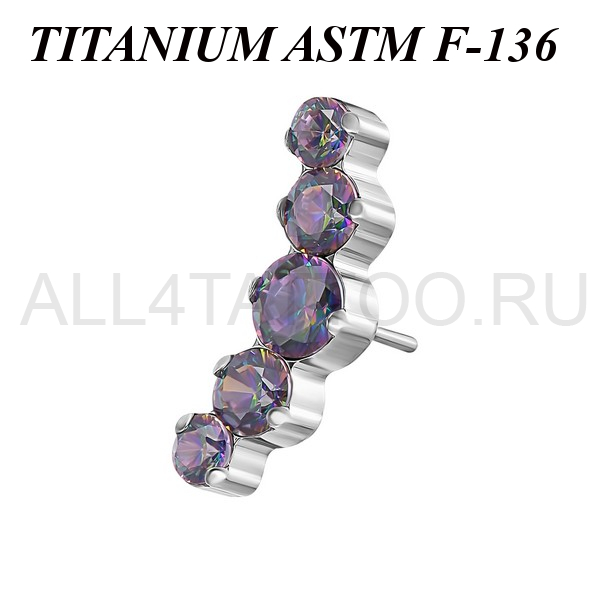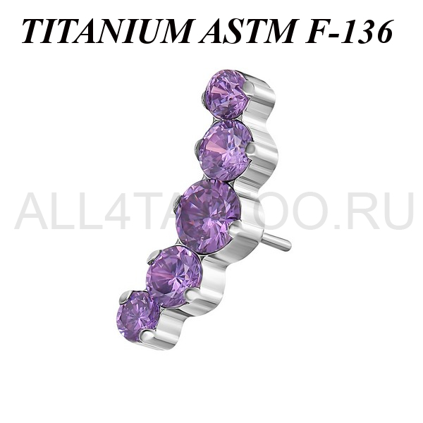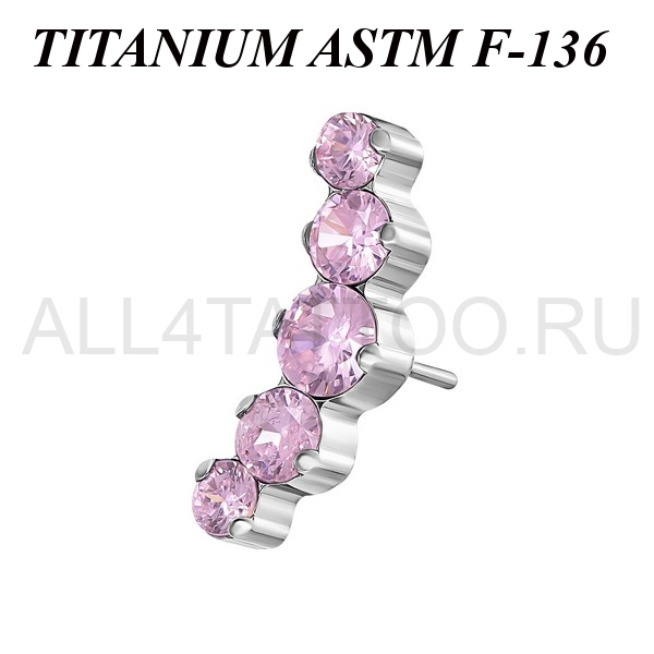 Вставка из имплантационного титана 6Al-4V-Eli ASTM: F-136 для безрезьбовых украшений. Украшена кластером с пятью фианитами. Размер декоративной части: 4,3х12мм.