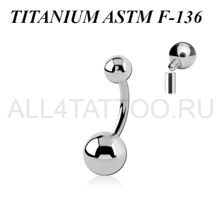 Банан из имплантационного титана 6Al-4V-Eli ASTM: F-136, верхний шарик с внутренней резьбой, нижний с внешней резьбой. Диаметр нижнего шарика: 8мм, верхнего: 5мм.
