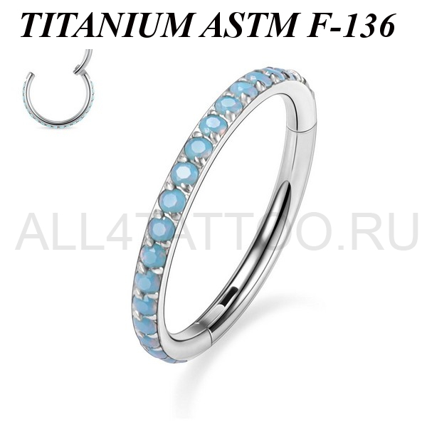 Изящный кликер из имплантационного титана 6Al-4V-Eli ASTM: F-136. Украшен сетом опалитов.