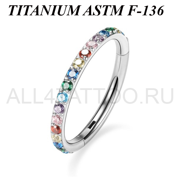 Кликер из имплантационного титана 6Al-4V-Eli ASTM: F-136. Украшен сетом разноцветных фианитов.