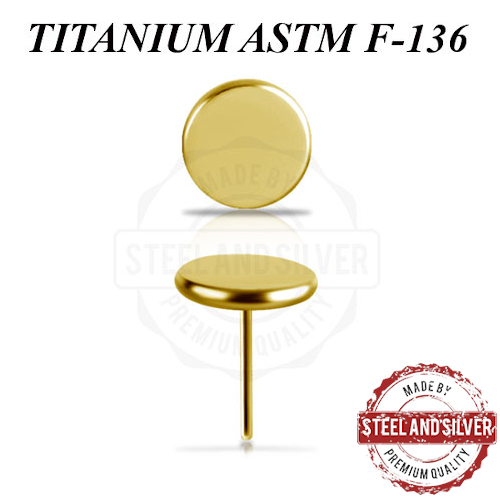 Вставка из имплантационного титана 6Al-4V-Eli ASTM: F-136 с 24х каратным золотым PVD покрытием. Предназначена для безрезьбовых украшений.