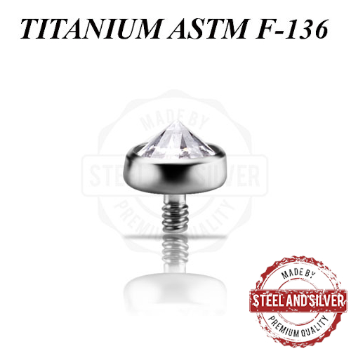 Накрутка из имплантационного титана ASTM F-136 украшена кристаллом Premium Cubic Zirconia. Подходит для украшений толщиной 1,6мм с внутренней резьбой диаметром 1,2мм.