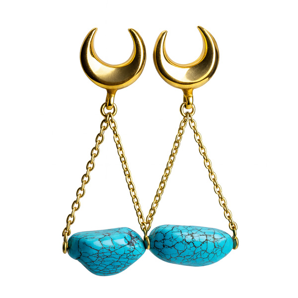 Подвесы из латуни. Украшены камнем из искусственной бирюзы. Рисунок и форма каждого камня уникальны, мы подберём максимально похожие.