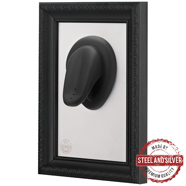Дисплей для демонстрации украшений с анатомическим силиконовым элементом в элегантной чёрной рамке. Идеально подойдет для штанг в язык.