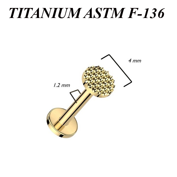 Лабрет с внутренней резьбой из имплантационного титана 6Al-4V-Eli ASTM: F-136. Представлен в двух вариантах: классический титановый и с золотым PVD покрытием.