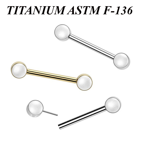 Безрезьбовое украшение из имплантационного титана 6Al-4V-Eli ASTM: F-136. Украшено искусственными жемчужинами. Представлено в двух вариантах: классическое титановое и с золотым PVD покрытием.