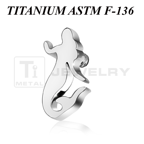 Накрутка из имплантационного титана 6Al-4V-Eli ASTM: F-136 в виде русалки. Размер : 6,3х3,4мм. Подходит для украшений с внутренней резьбой толщиной 1 и 1,2 мм.