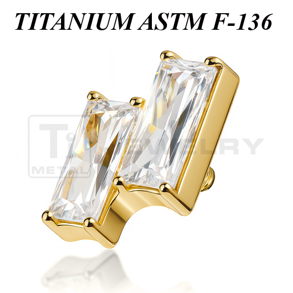 Накрутка из имплантационного титана 6Al-4V-Eli ASTM: F-136 с прозрачным фианитами. Представлена в двух вариантах: классическая и с золотым PVD покрытием. Размер накрутки: 6,2х4,4мм. Подходит для украшений с внутренней резьбой толщиной 1 и 1,2 мм.