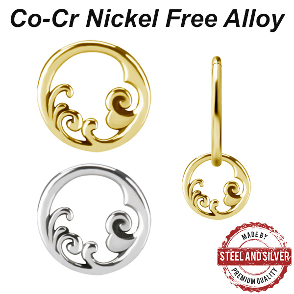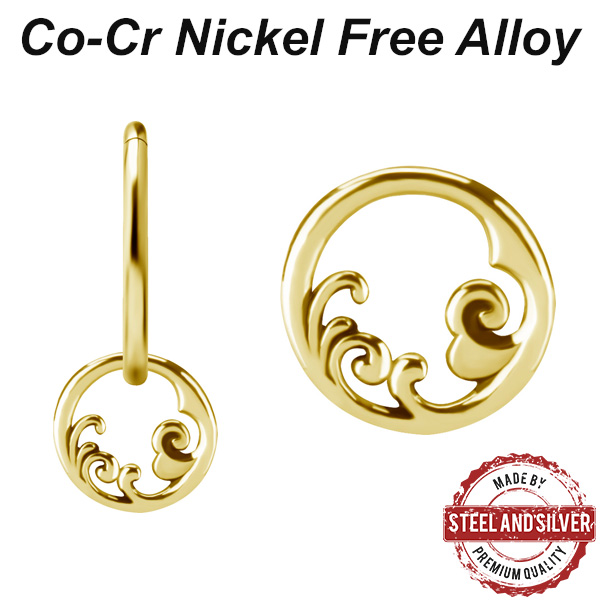 Подвеска из сплава кобальт-хрома, без содержания никеля. Подходит для колец толщиной не более 2мм. Представлен так же вариант с 18-ти каратным золотым PVD покрытием. Диаметр: 8мм