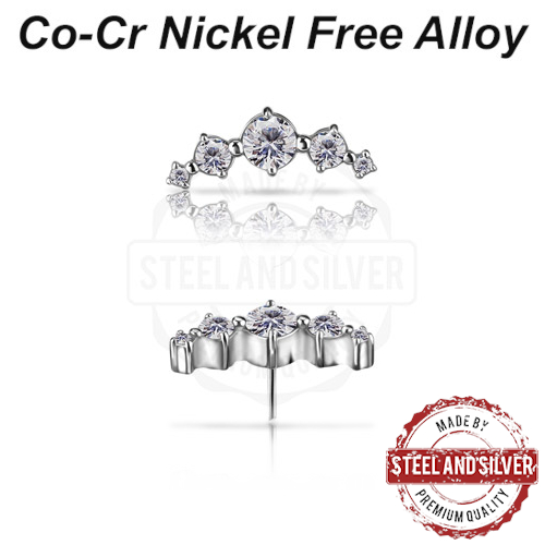 Вставка для безрезьбовых украшений из сплава кобальт-хрома, без содержания никеля. Украшена кристаллами Premium Cubic Zirconia. Размер декоративной части: 12х4,4мм.