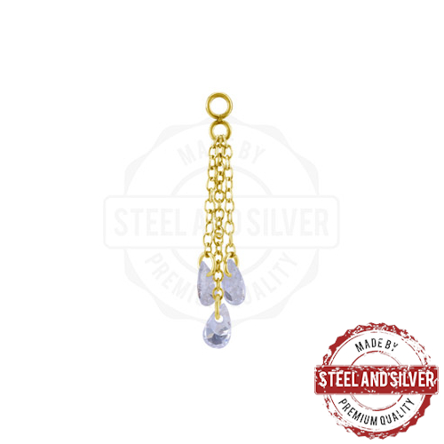 Подвеска-цепочка из хирургической стали 316L с PVD покрытием 24х каратного золота. Украшена кристаллами Cubic Zirconia. Подходит для украшений толщиной не более 1,6мм. Длина украшения указана вместе с кристаллом.